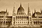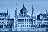 Budapest city, Hungarian capital - front facade, towers and dome of Hungarian Parliament Building.