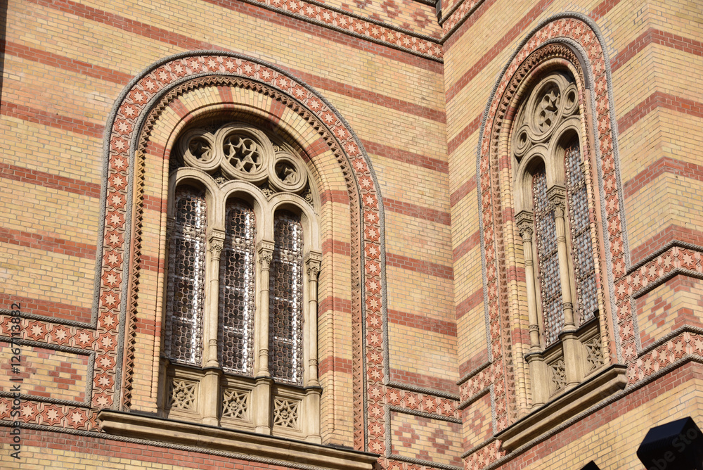 Budapest city, Hungarian capital - Jewish synagogue in city center, part of ghetto during World War II.