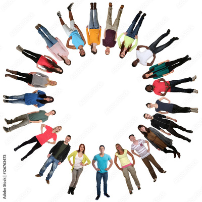 Lachende multikulturell junge Menschen People Leute Gruppe im Kr