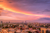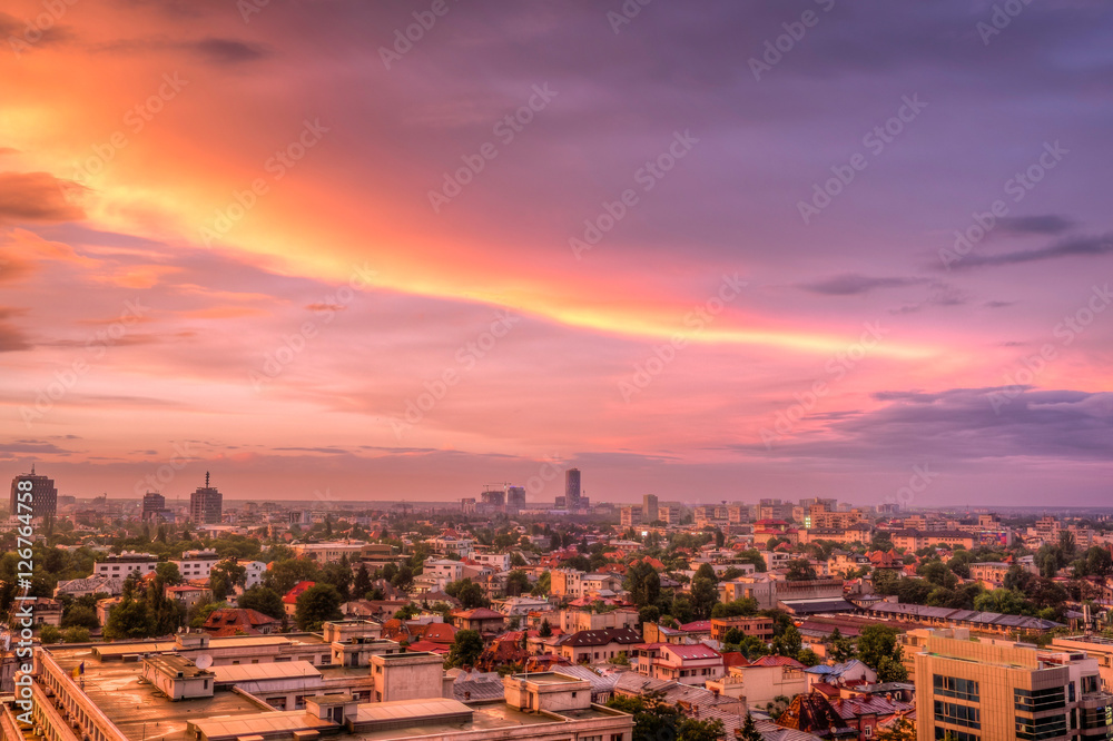 Sunset after the storm in Bucharest, Romania. Aerial View