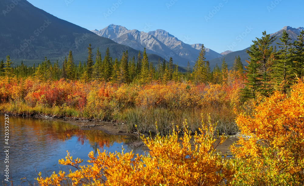 Two giraffes are peacefully grazing in the beautiful savannah under the vast blue sky