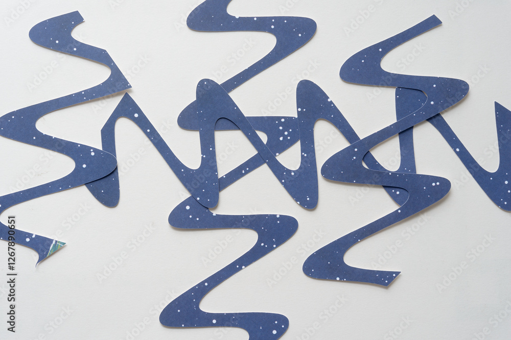 overlapping, repeating wave pattern machine-cut from blue paper with spots
