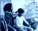 child mother family education school girl home daughter backpack help parent getting ready elementary teen morning hug love helping together black