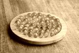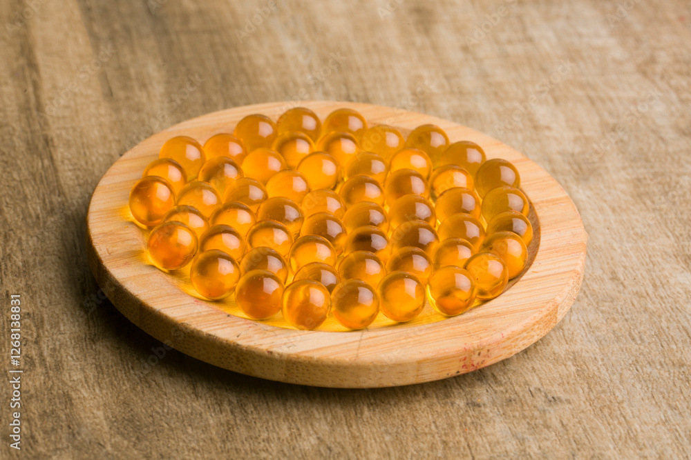 plate with fish oil capsules on white background