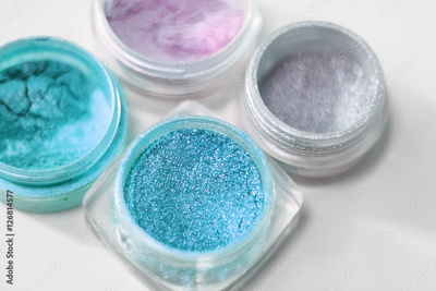 Gold glitter, shiny eyeshadows. Brilliant glitter nail design on