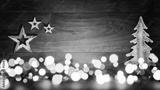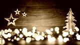 Weihnachten Hintergrund aus Holz und Lichtern, fröhlich und kontrastreich