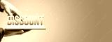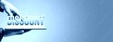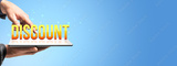 Discount text on digital tablet with hands presenting special offer.