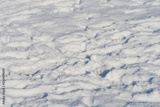 A snow-covered ground with gentle undulations and subtle shadows highlighting the natural texture of the snow
