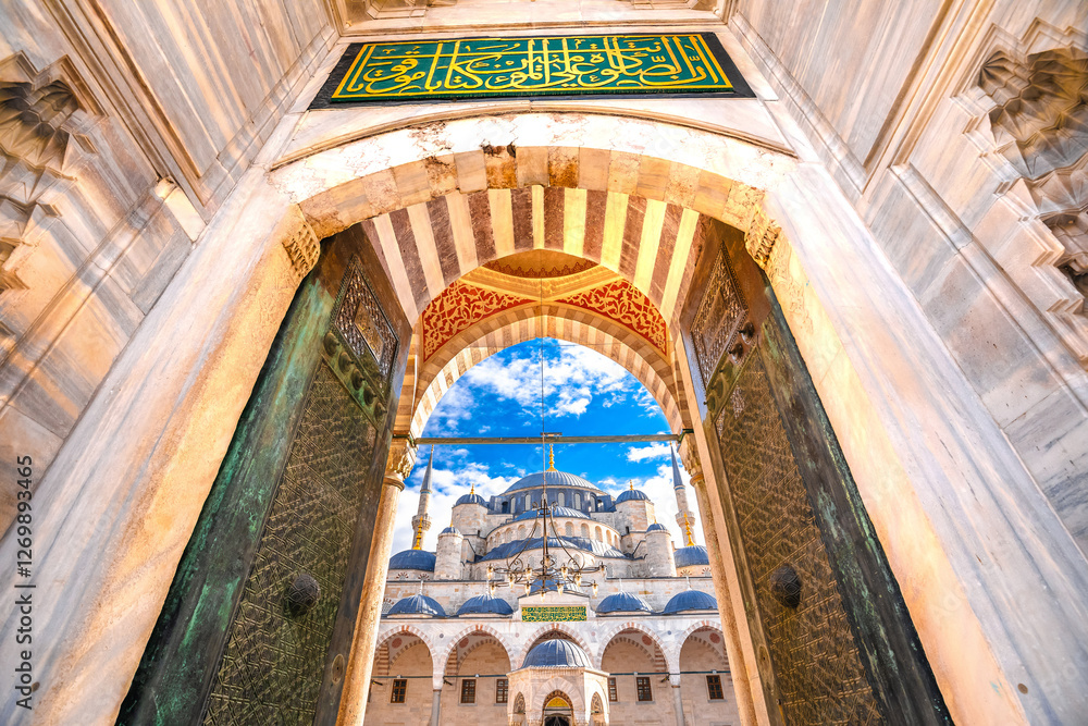 The Blue Mosque, officially the Sultan Ahmed Mosque epic entrance architecture view