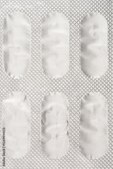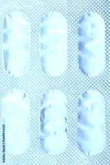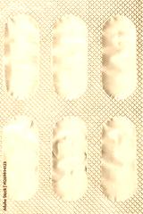 A close-up shot of the underside of a medicine capsule pack reveals its detailed structure and design