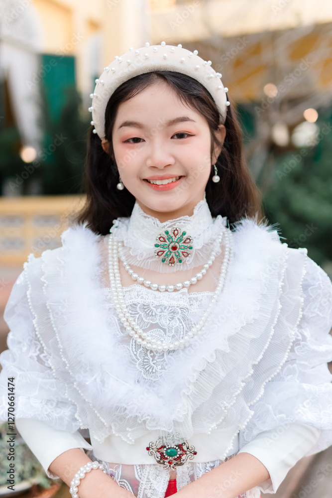 Cultural celebration young girl in traditional dress festive event outdoor setting joyful atmosphere