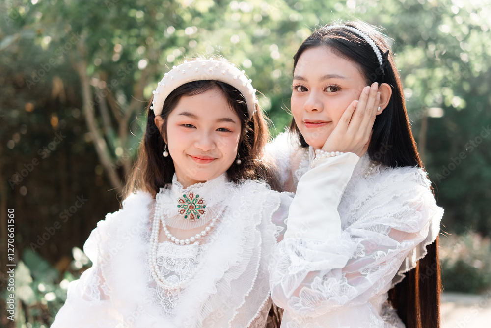 Joyful sisterly bond outdoor setting portrait photography natural light close up family love
