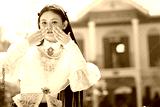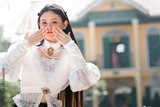 Cultural expression close-up fashion and emotion in historic urban district portrait photography