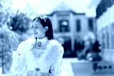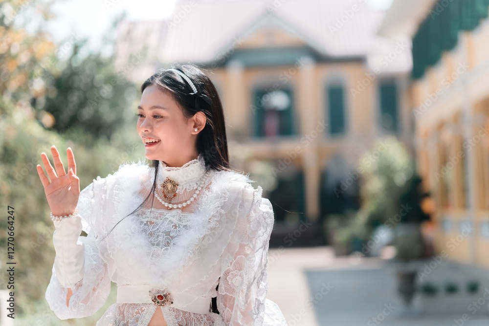 Timeless beauty elegant vintage attire in historic garden fashion photography