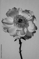 Flower in Gentle Sunlight. Delicate Petals and Tranquil Mood. Black and White, Monochrome
