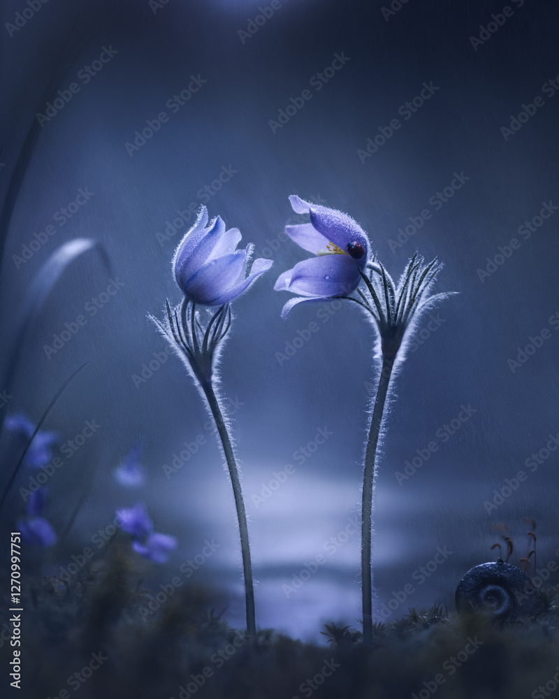 A magical image of two delicate primroses leaning towards each other. Suitable for postcards, book covers, websites, blogs, and any creative projects.