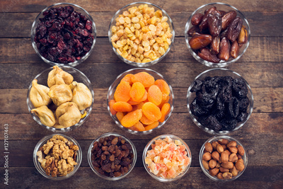 Dried fruits and nuts in the bowl