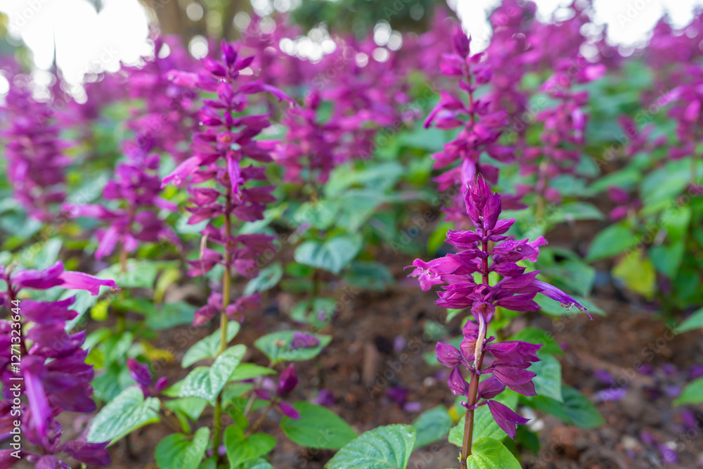 Salvia divinorum is a plant species belonging to the Lamiaceae family. a field of purple flowers, a field of purple salvia divinorum.