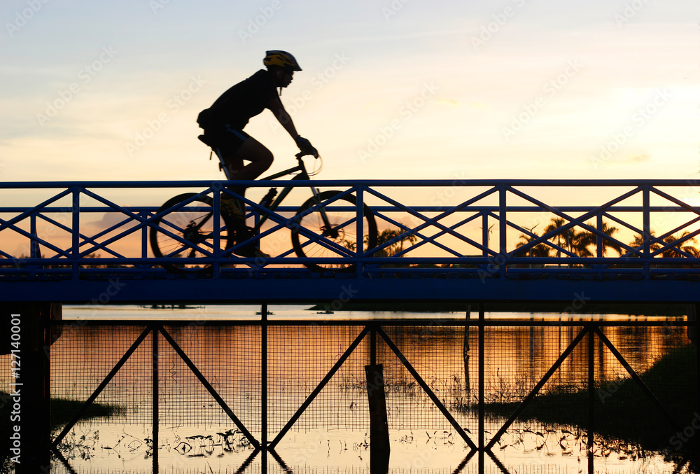 biker riding bicycle on the bridge