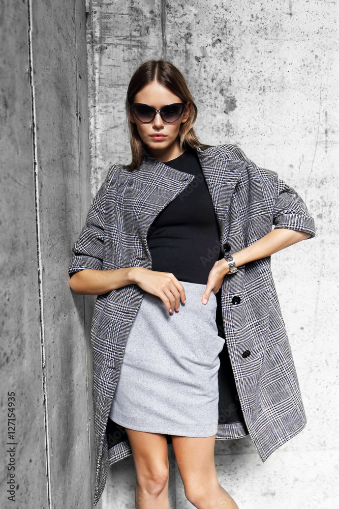 high fashion portrait of young elegant woman outdoor.