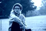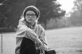 Teenage girl sitting in a park, wearing hooded sweater and beanie