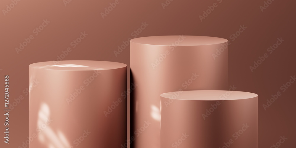Abstract Terracotta Cylindrical Display Podiums on Warm Background