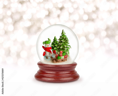 Christmas snow ball or glass globe. Snowman with gifts. Can be used as a Christmas or a New Year gift or symbol.