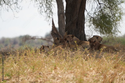 pride of lionesses laying under a tree in tarangire national park tanzania, wallpaper, grass
