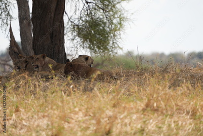 pride of lionesses laying under a tree in tarangire national park tanzania, wallpaper, grass
