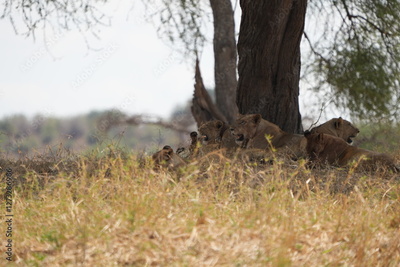 pride of lionesses laying under a tree in tarangire national park tanzania, wallpaper, grass