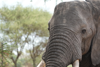 Close-Up of African Elephant Browsing on Acacia Tree – Safari Wildlife in Natural Habitat