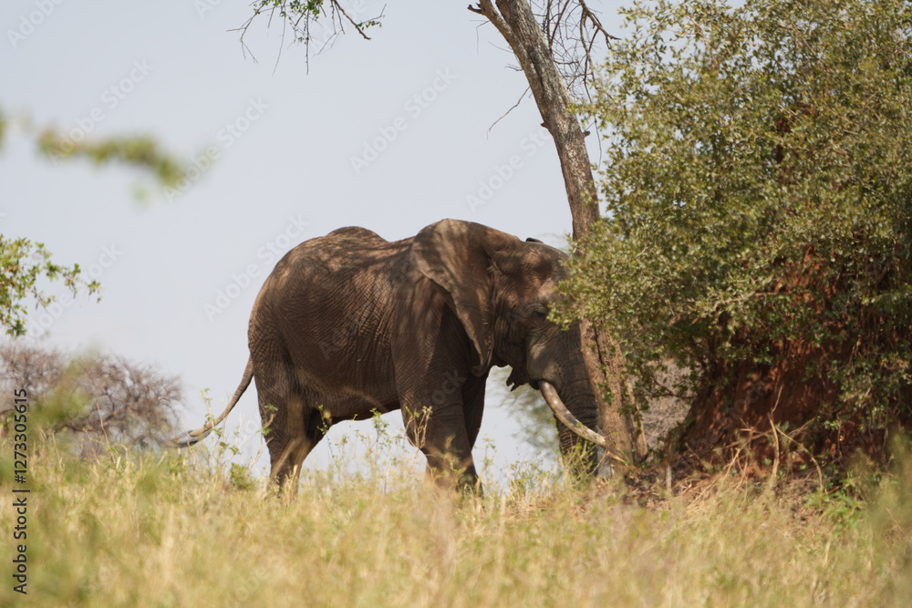 portrait of an african elephant walking through the savannah of tarangire national park tanzania, wallpaper