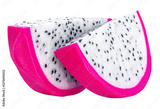 Dragon fruit, fresh Pitaya isolated on white background. Organic Slices white Pitayha fruit. Tropical summer food concept.