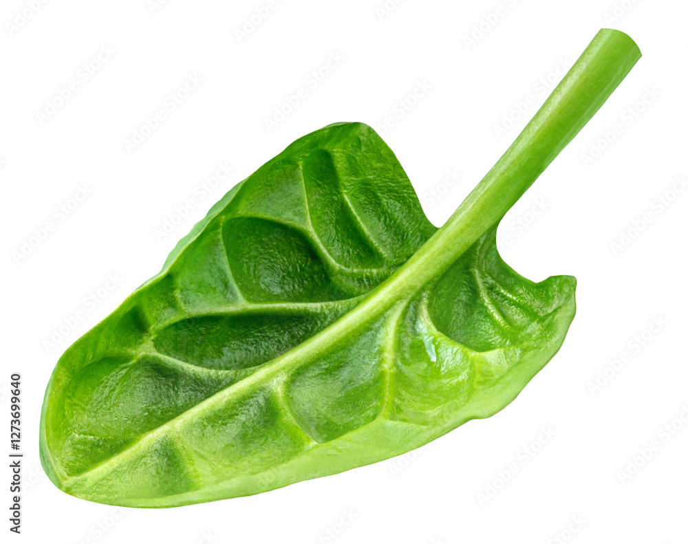 Falling Spinach leaf isolated on white background. Baby Spinach leaf Flat lay. Top view. Espinach leaves food salad ingredient. Package design element.