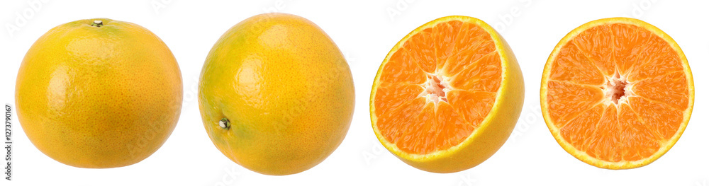 Tangerine orange or Clementine half and slices isolated, transparent PNG, PNG format, cut out
