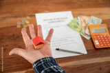Conceptual image of home ownerhip with a small house model in male hand