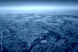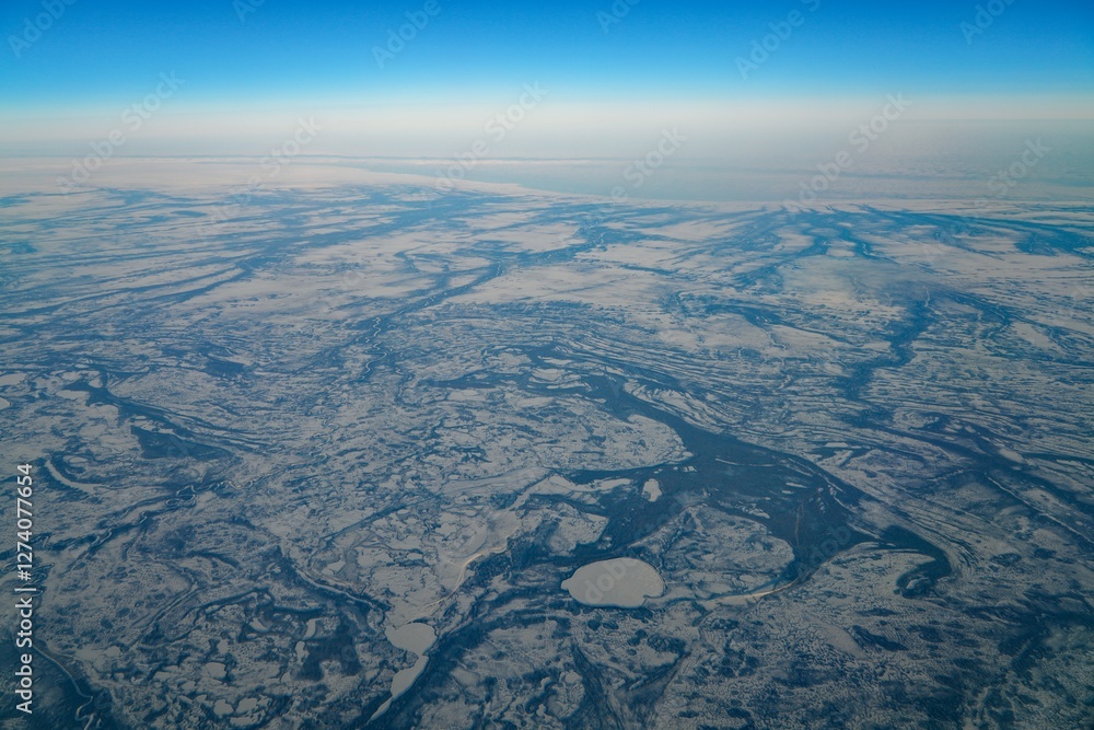 Aerial view of the frozen Hudson Bay, Canada, in winter