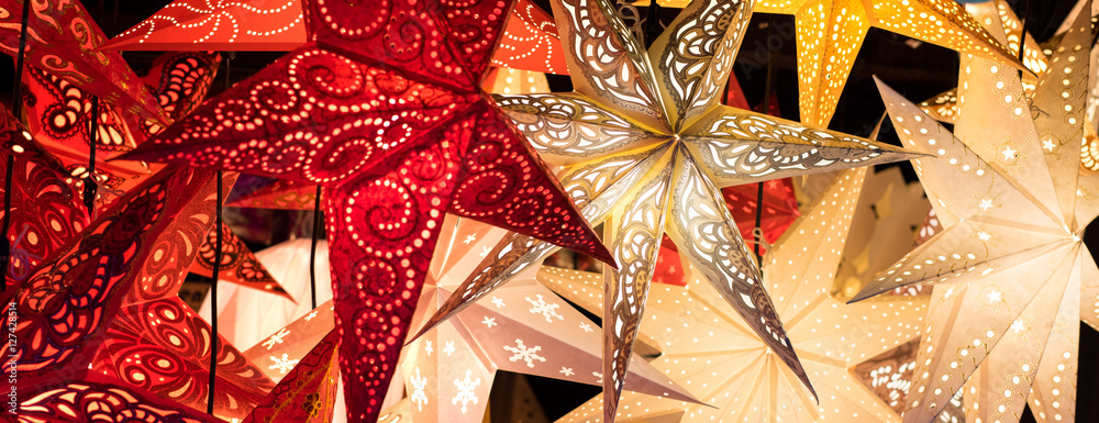 Weihnachtssterne auf dem Weihnachtsmarkt Panorama