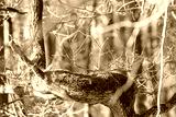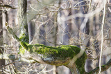 Green moss on a tree trunk, winter forest