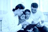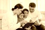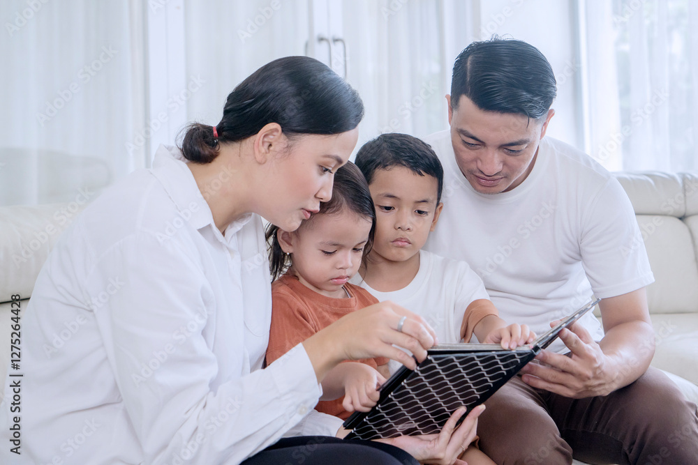Caring Parents Teaching Their Children Using a Tablet at Home