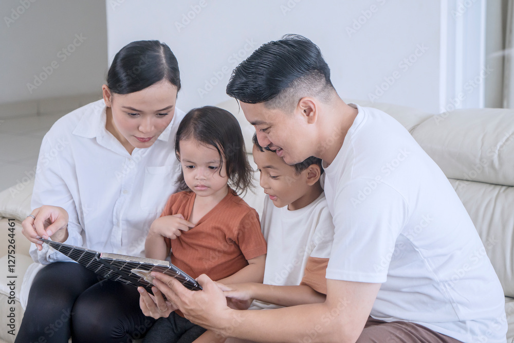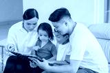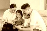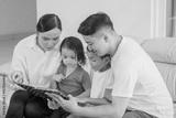 Happy Family Reading a Storybook Together at Home