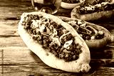 Turkish pide pizza loaves with oil