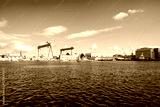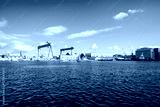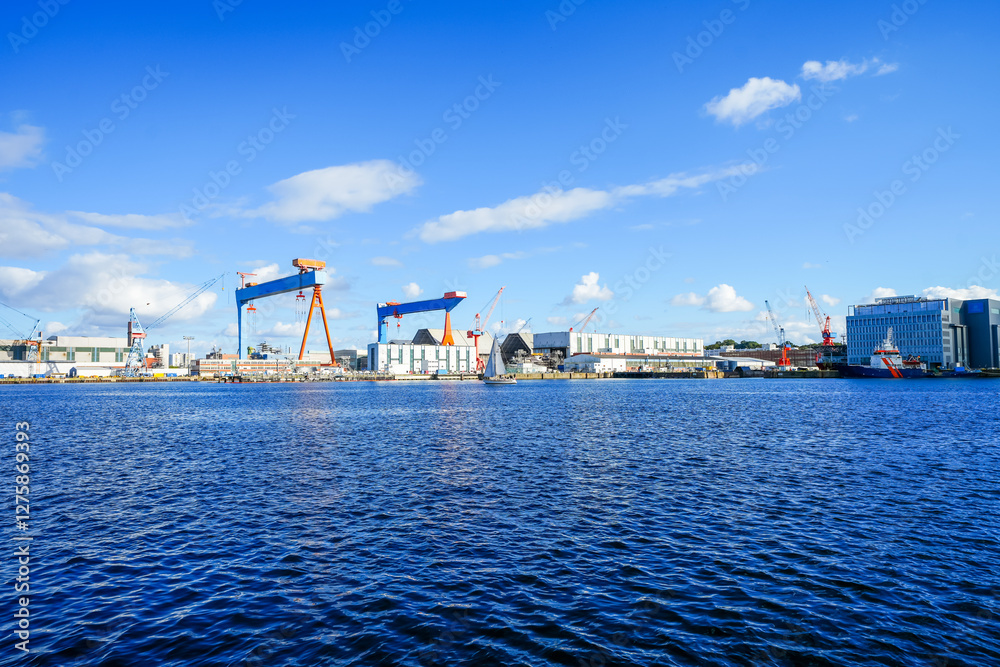 View of the harbor and the Baltic Sea in Kiel. Baltic Sea arm Kiel Fjord.