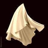 3d abstract white cloth, flying fabric,dynamic textile object isolated on black background