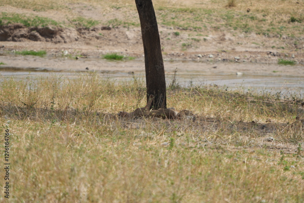 pride of lionesses sleeping under a tree in the tarangire national park tanzania