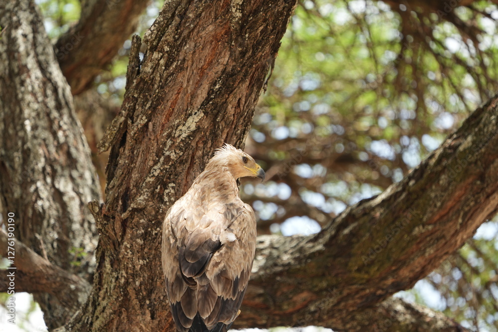 Tawny Eagle Vigil: A Majestic Sentinel of Tarangire - Portrait and Wallpaper in a tree