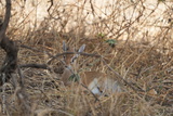 portrait of a male dikdik laying in the savannah of the tarangire national park tanzania