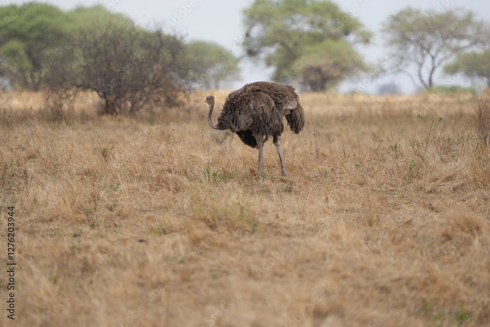 ostrich in the savannah of tarangire national park tanzania safari