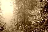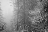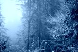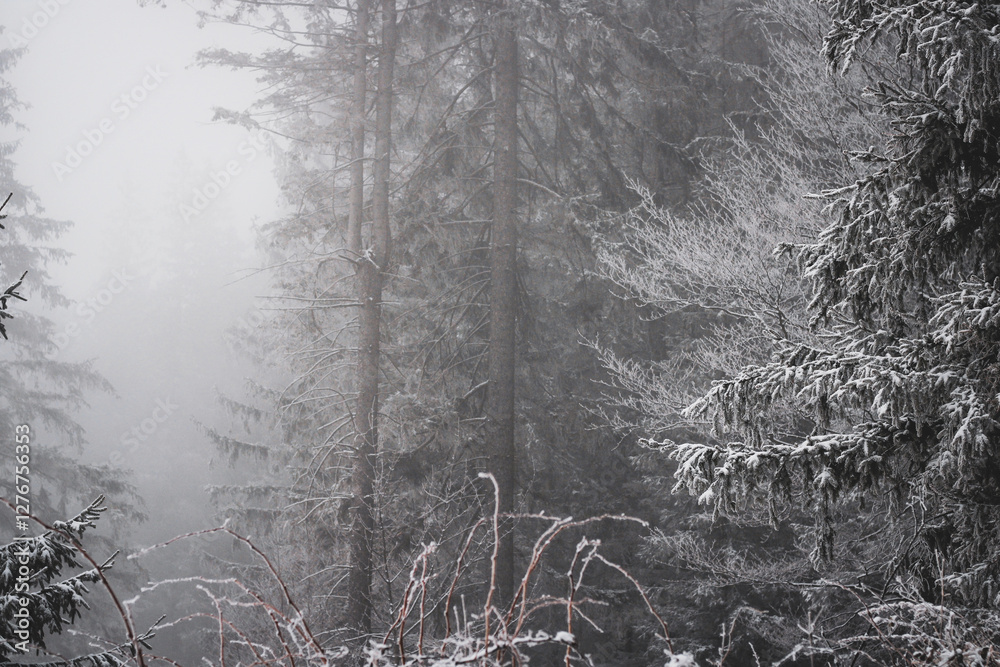 frozen winter landscape covered in snow and fog when hiking in czech mountains