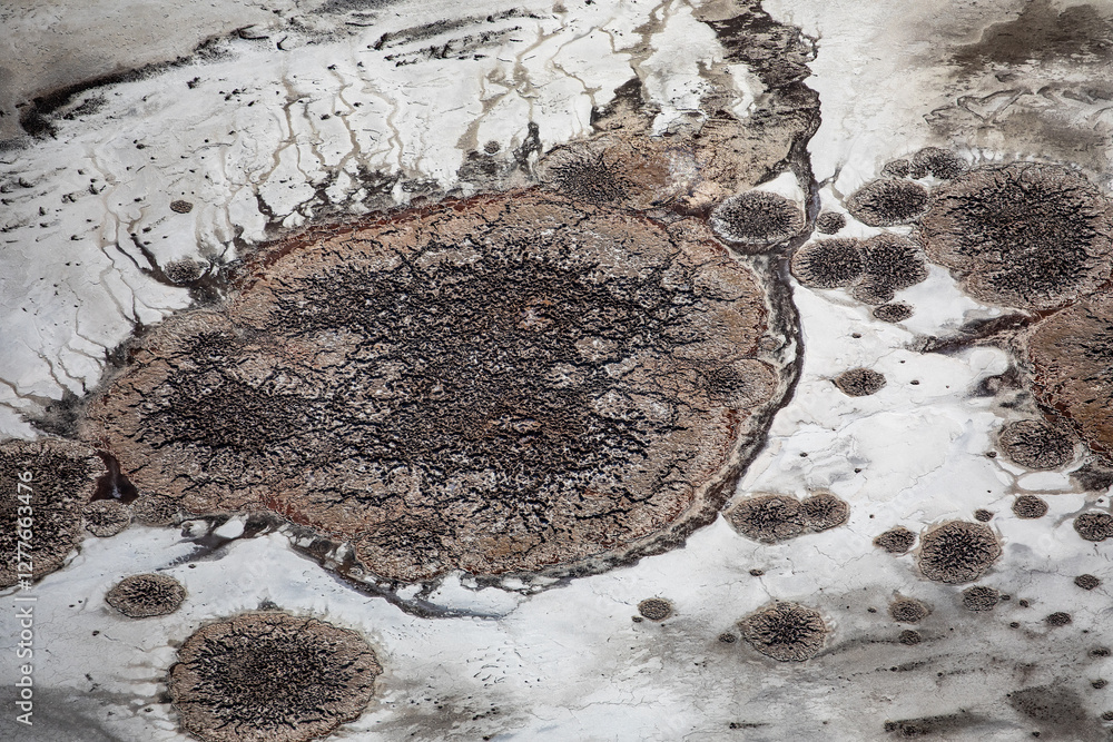 Lake Eyre, Kati Thanda, South Australia, Australia. Aerial photography showing textures, patterns and colours of mound springs following the wet season.
